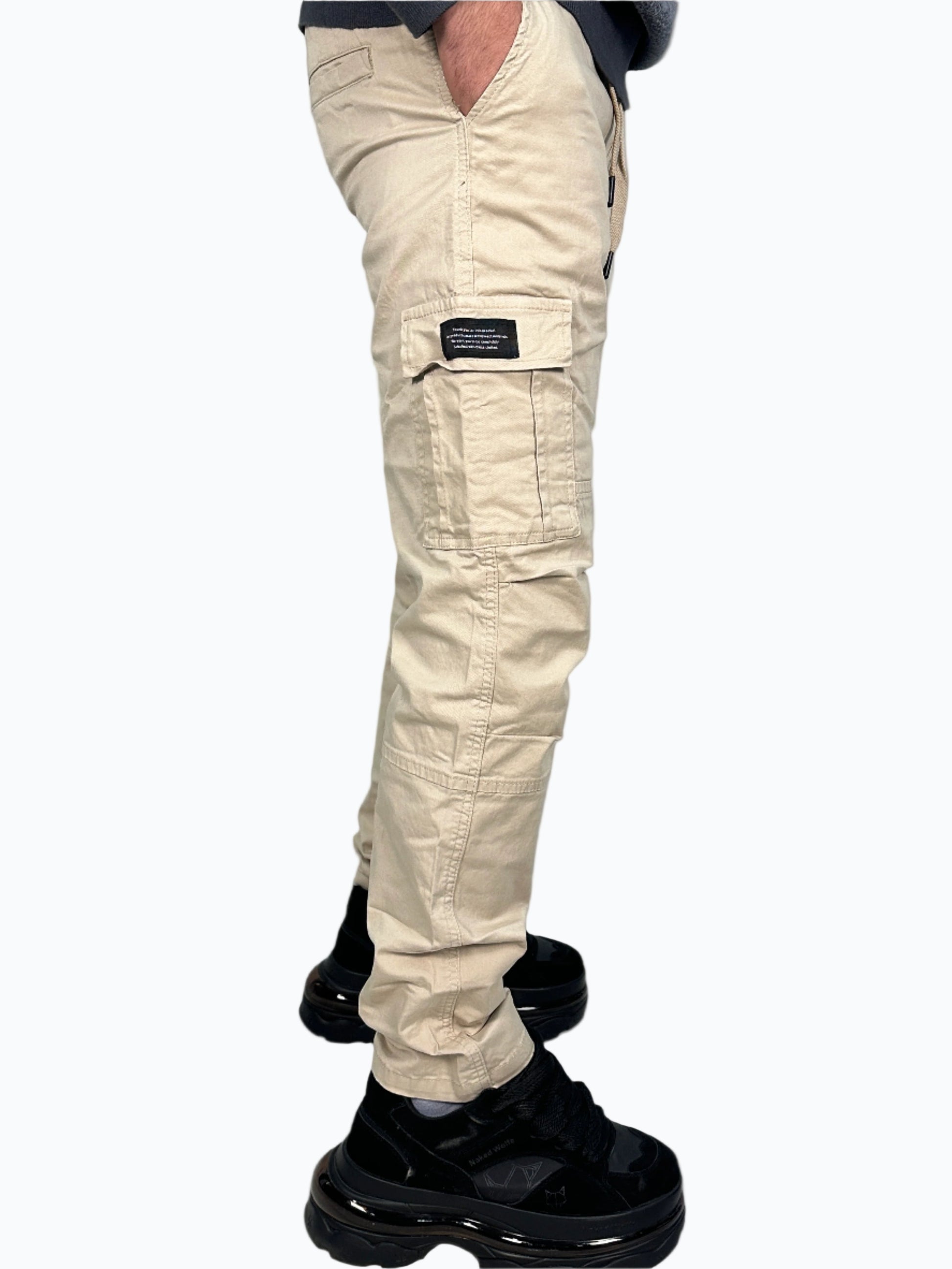 - The pants shown in the image are Gabardine Cargo Jogger Pants, combining a casual style with a practical touch.