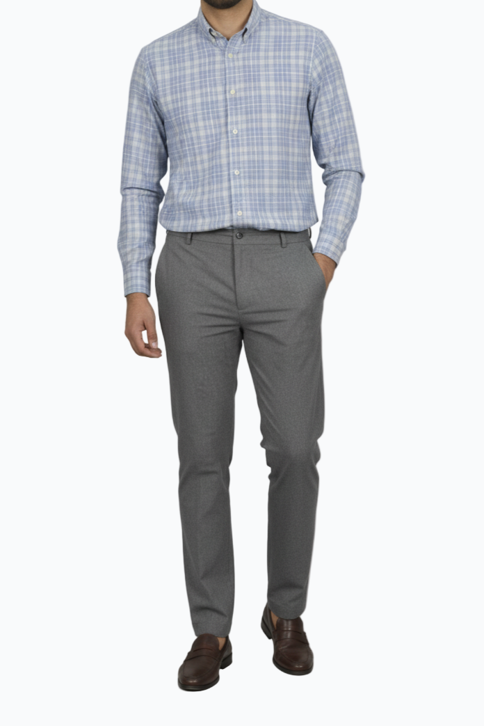 Collar: A Button-Down Collar, a classic style secured with small buttons, creating a neat and refined look.
